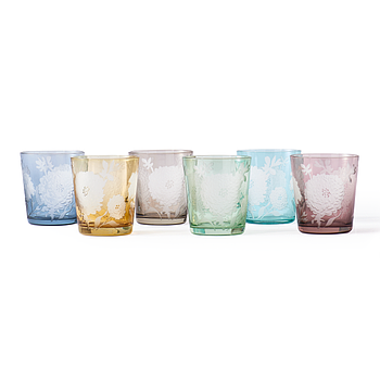 Pols Potten Studio Overall Size: Dia8.6 H10cm Finish: full coloured glass with sandblasted patterns Capacity: 250 ml per glass Details: Dishwasher safe SKU: 140-230-110 |
